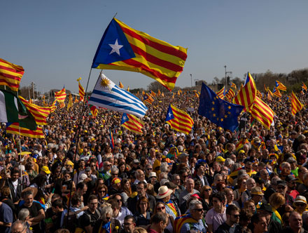 ▲ Más de 100 mil separatistas acudieron ayer a la ciudad francesa de Perpiñán, a sólo unos kilómetros de Cataluña, al acto multitudinario encabezado por el ex presidente Carles Puigdemont, quien llamó a la