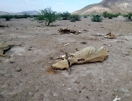 ▲ A la muerte de 42 mil cabezas de ganado en Durango (imagen) se suma que los bordos construidos para que abreven las reses ya están en menos de 5 por ciento de almacenamiento. En Parral, Chihuahua, pozos y presas que surtían a más de 100 mil habitantes se secaron. En la sierra de Sinaloa decenas de familias han emigrado por la escasez de agua, mientras en grandes ciudades, como Xalapa y Guadalajara, varias colonias padecen la falta del líquido. Foto Saúl Maldonado. / Corresponsales