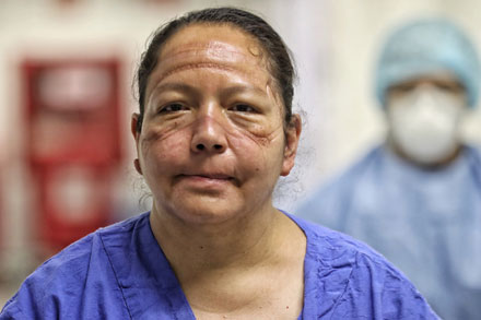 ▲ La imagen de una enfermera fatigada, con huellas en el rostro por el equipo que usó durante horas para evitar contagiarse al atender a enfermos de coronavirus en el Hospital Juárez, de la Ciudad de México, obtuvo el primer lugar del certamen alemán de periodismo Marcas de la pandemia, en la categoría de fotografía y caricatura. El fotorreportero expuso que captó la serie cuando apenas comenzaba la epidemia en el país.