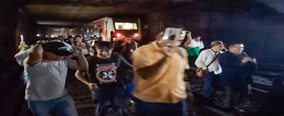 ▲ Alrededor de las 6 de la tarde de ayer, pasajeros tuvieron que bajar de un convoy varado y caminar por las vías en la interestación Pino Suárez-Zócalo. Los problemas para trasladarse de Cuatro Caminos a Tasqueña continuaron hasta después de las 9 de la noche. Foto La Jornada