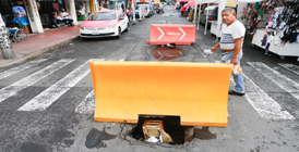 ▲ Colocan sobre los hoyos lo que tienen a la mano. Foto Víctor Camacho