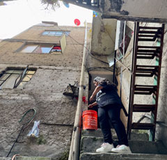 ▲ Ante la falta de agua potable en la alcaldía Álvaro Obregón, las familias se las ingenian para acumularla cuando llegan a tener el suministro por las noches o las pipas las abastecen. En colonias como Zenón Delgado, las calles empinadas y estrechas dificultan la tarea de acarrear las cubetas. Foto Roberto García Ortiz / Mara X. Pérez
