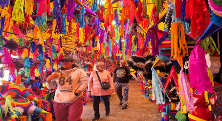 ▲ Desde el 12 de noviembre comenzó la venta de árboles provenientes de Oregon, con costos de mil 200 a 2 mil 500 pesos, mientras en otros locales exhiben piñatas tradicionales y de figuras alusivas a la temporada, así como dulces para los aguinaldos. También se ofertan nacimientos de cerámica, esferas y flores de nochebuena. Foto Cristina Rodríguez. Nayelli Ramírez